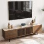 POVISON Mid Century Modern Sintered Stone TV Stand, Slatted Media Console TV Cabinet with Tall-cast Metal Legs, Fluted